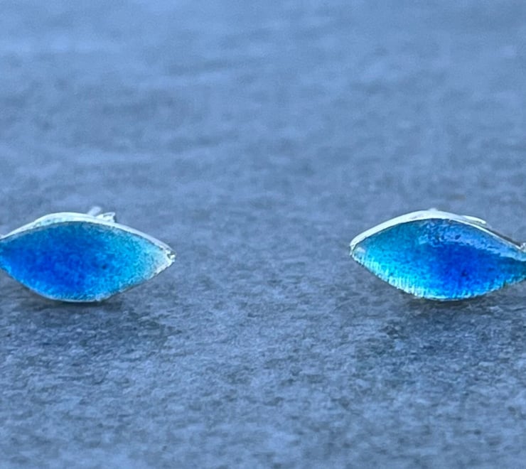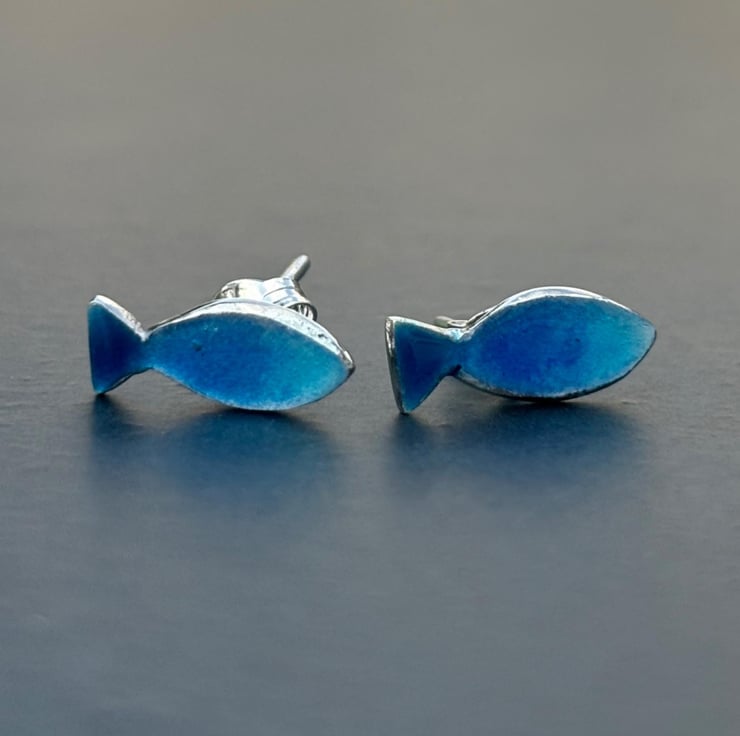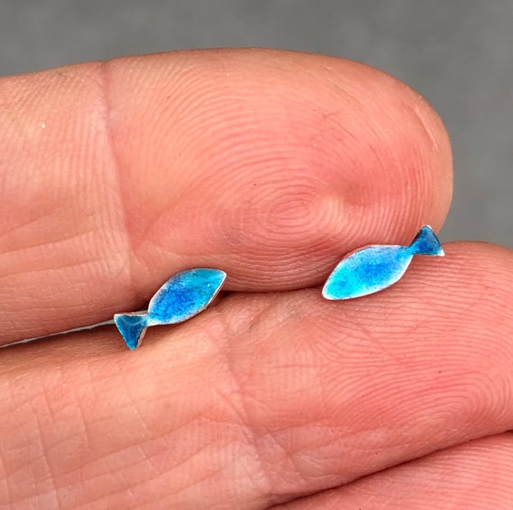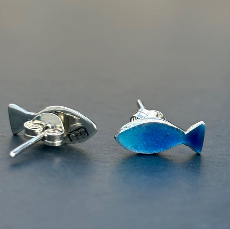 These fish studs are made from Sterling Silver and beautiful blue enamels. They measure approx: 1cm in length. The backs and the posts are also Sterling Silver.