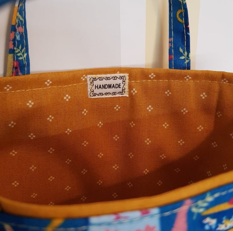 Handsewn by me with cotton fabric it is lined and interlined so will keep its shape. And it can be used to keep something in so has a future use too.