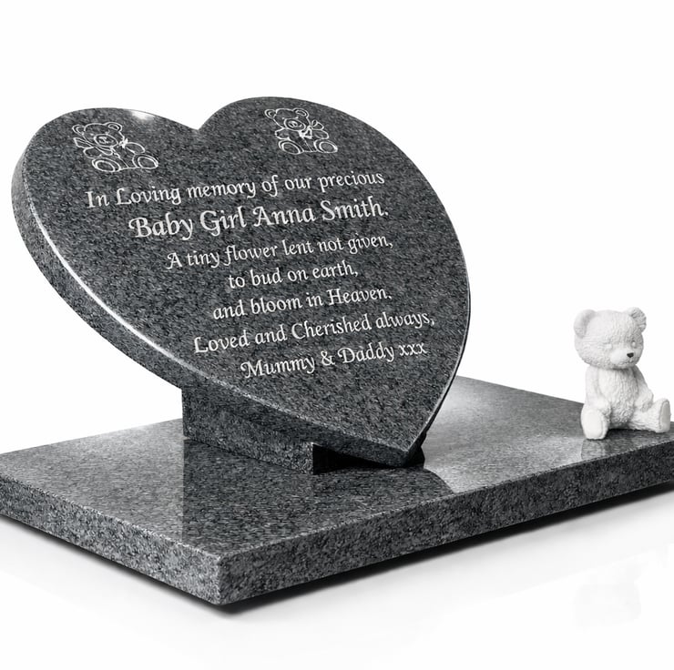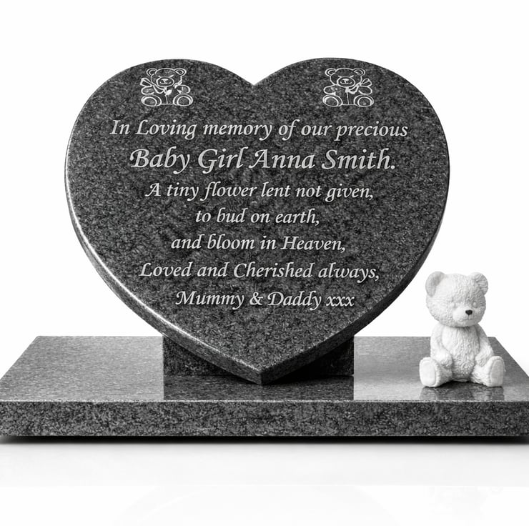 The Heart plaque sits up on two solid granite feet attached to the granite base.