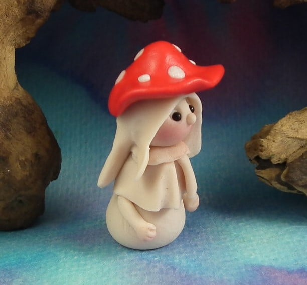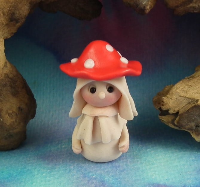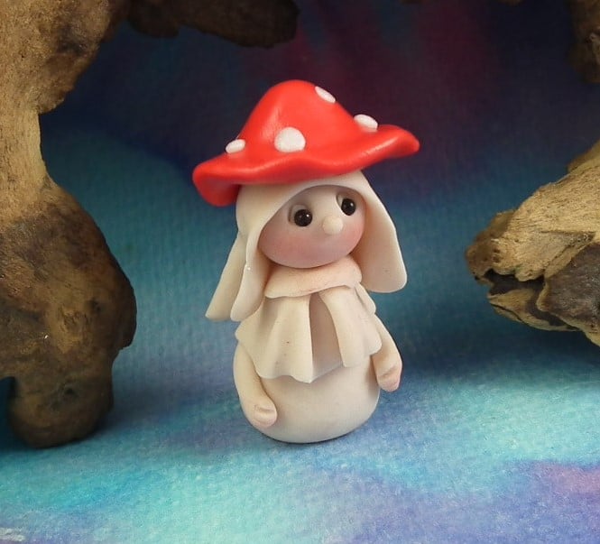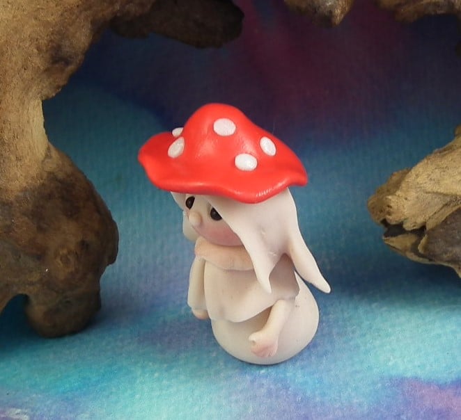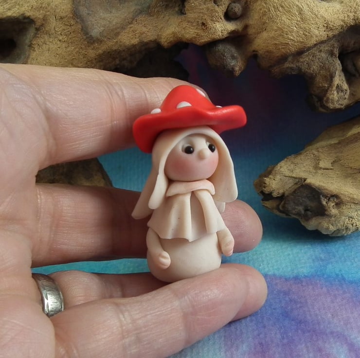 This is a 'one of a kind' creation having been entirely handmade without the use of moulds here at my studio on the Sussex Coast. Modelled with artist blend polymers, blushed before sealing with lacquer, Flair has sparkling black onyx eyes and fringed robes. Flair the Toadstool Gnome is just two inches tall.