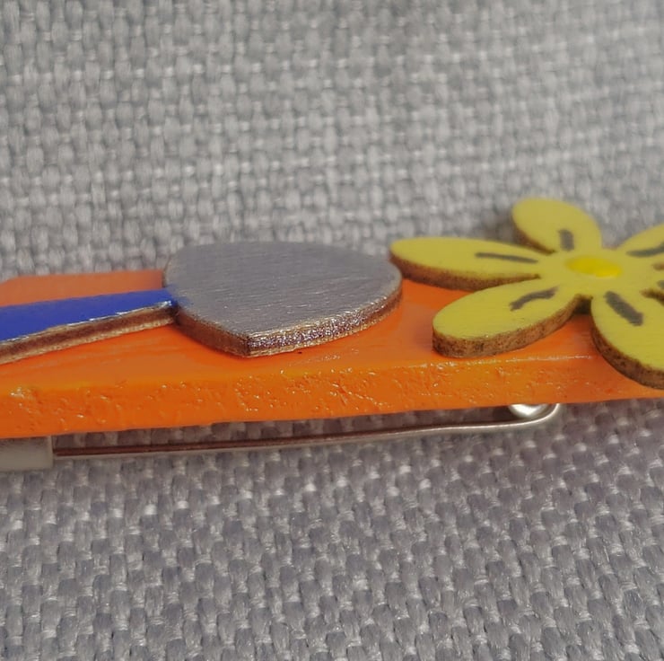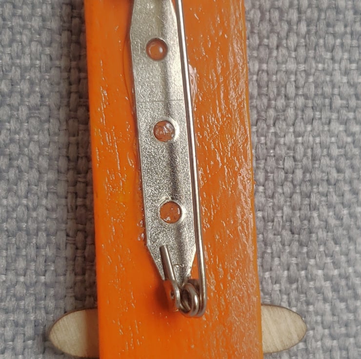Made using repurposed wooden blanks and wooden canvas pegs. They are painted with a range of acrylic paint. Each of these brooches are different so you will get a unique, one off piece.