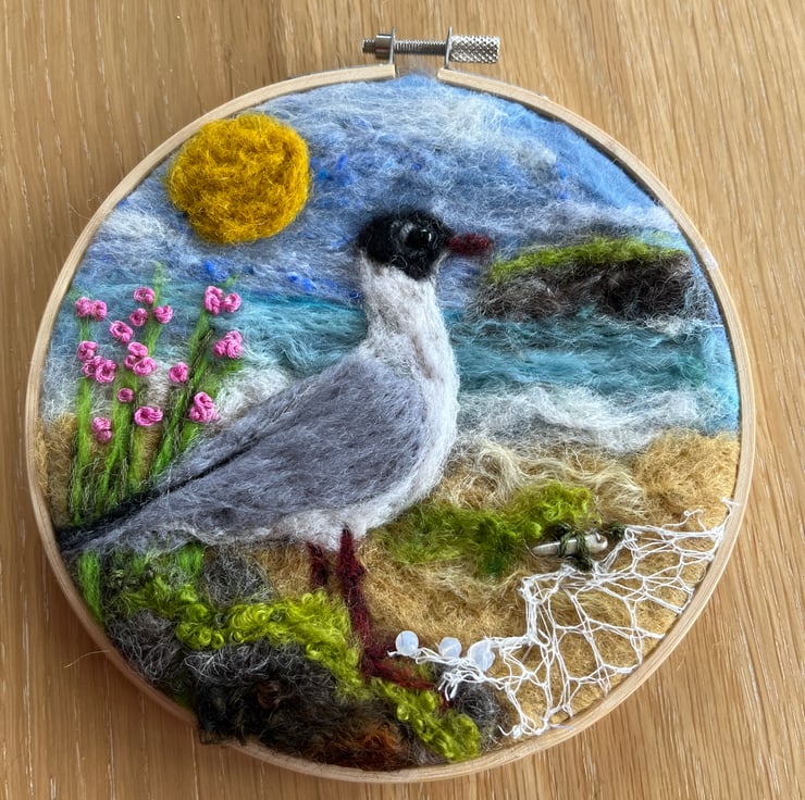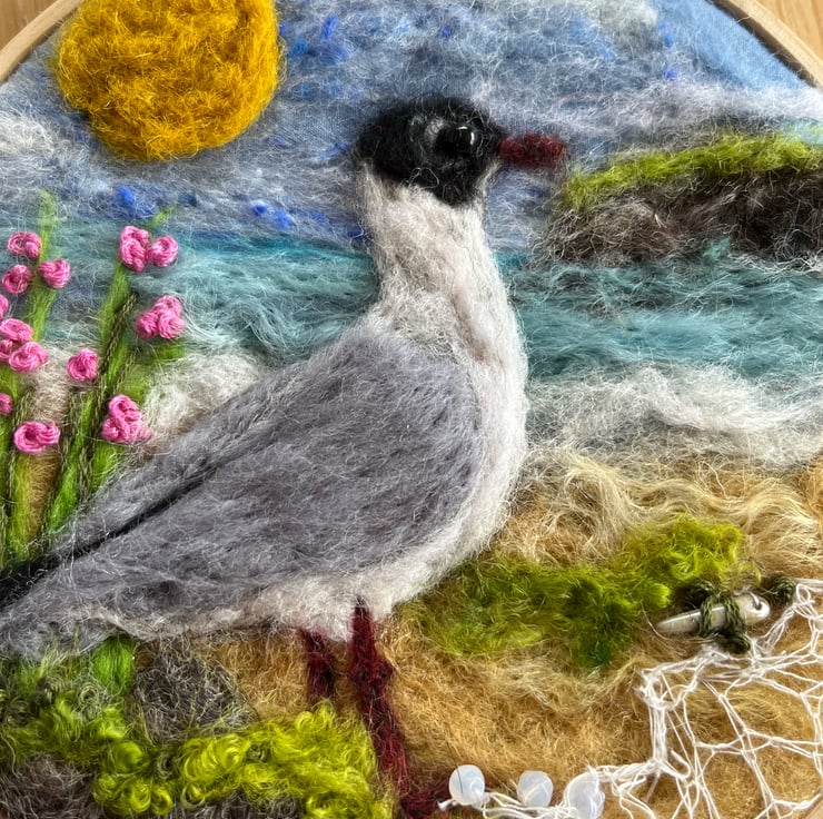 Black-headed gull-seaside-picture-needle felted-coastal decoration