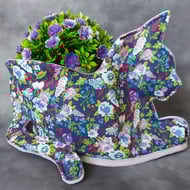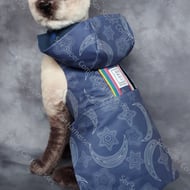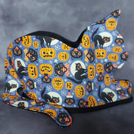 A lovely comfortable cat harness made from blue and yellow animal patterned cotton touch polyester, with 100% pale blue cotton lining. Hook and loop fasten around the abdomen and neck. Velcro fastens at the sides rather than underneath the stomach and neck, for easier fastening for the handler and comfort for the cat, there's nothing more irritating than having a strip of stiff Velcro stuck under your neck! The neck strap has also been designed thinner than most harnesses for comfort for the cat. It also has two strips of webbing running down the length, ads more comfort for the cat not to have webbing running and rubbing down the spine!