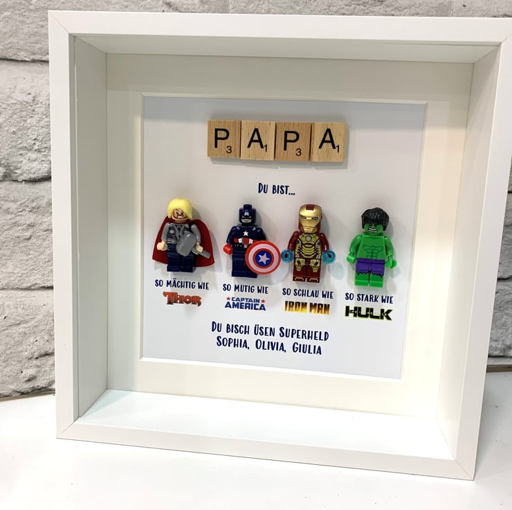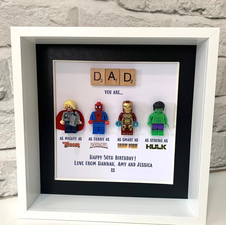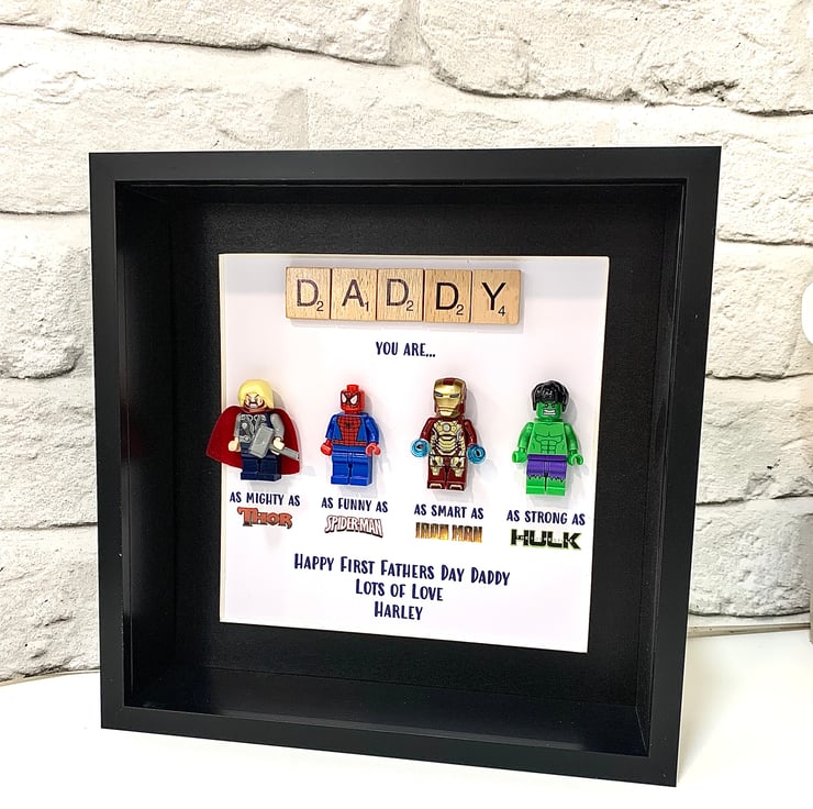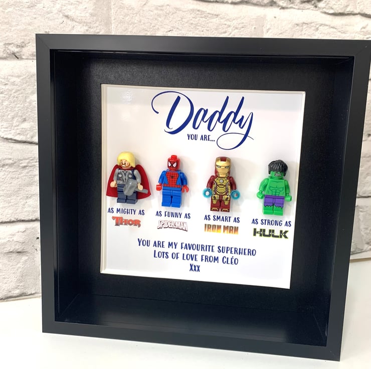 Calling all Superhero Fans..... give the perfect gift with a made to order personalised Superhero inspired Minifigure Picture Frame, the perfect birthday gift, father's day, wedding, anniversary or just because!