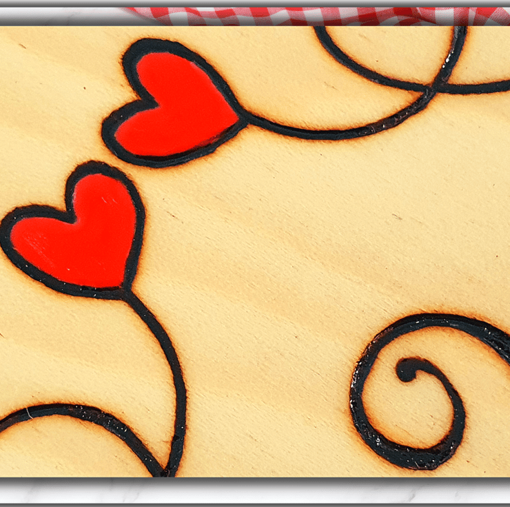 The ornament is also decorated with two hearts at the top, and a couple of small floral elements on each bottom corner, that have been filled with colour.
