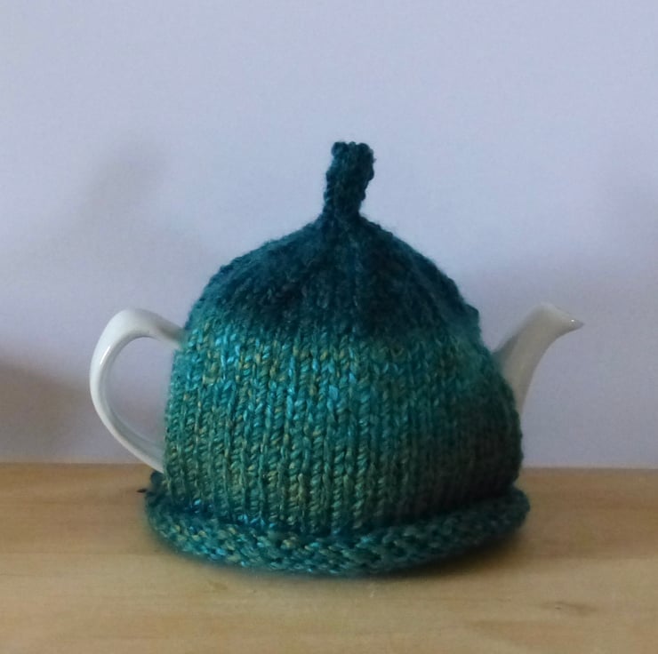 Knitted to fit a standard Two Cup Teapot this cosy has a roll rim and plenty of stretch so should fit a variety of small pots.