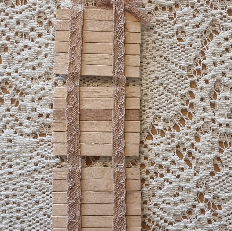 This is a handmade shabby chic wall hanging made from wood and napkins, in a beautiful vintage design, with a lace loop for hanging decorated with a lace bow. This wall decoration will look great in any room and would make an ideal gift or treat for yourself.