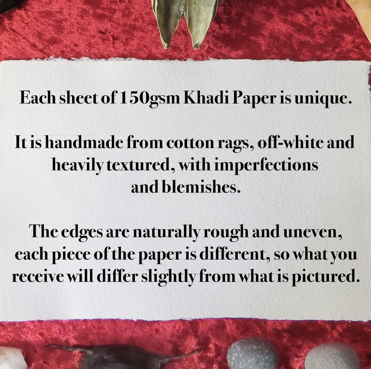 Please note, each sheet of Khadi paper is unique with its own blemishes and characteristics due to its handmade nature, contributing to the charm of the print. This means the edges will be frayed and uneven.
