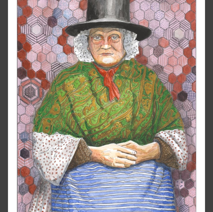 Introducing "The Quiltmaker" (2022), an artist-made art print from the world of Day Trip Art. Inspired by Celtic mythology and Welsh folklore, these high-quality giclée prints are available in three sizes: small (210mm x 148mm) with an approximate 11mm border on the bottom and 6mm on top and sides, medium (297mm x 210mm) with 15mm border on the bottom and 8mm on top and sides, and large (420mm x 297mm) with 22mm border on the bottom and 17mm on top and sides. Minor variations may occur due to manual processing.