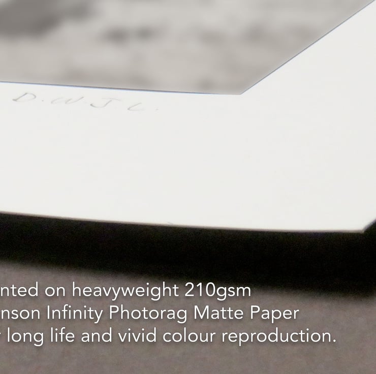 Each print is produced with meticulous care using a Canon Giclée printer, original Canon Lucia inks, and heavyweight matte 210gsm Canson Infinity Photorag paper. They are made, packaged, and shipped by the artist. Items despatched within 3-4 days, but delivery times may vary according to location.