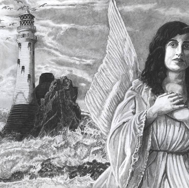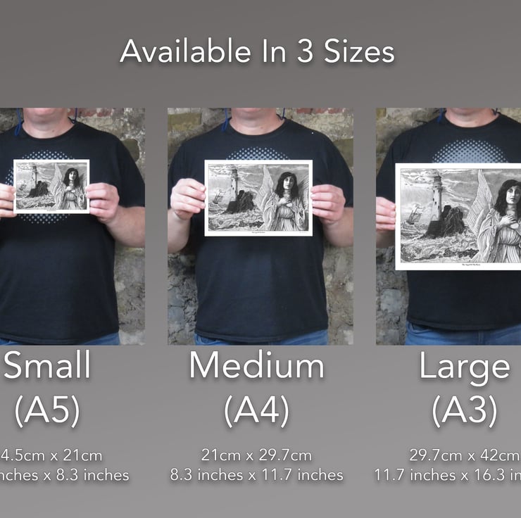 Introducing "The Angel Of The Rock" (2022), an artist-made art print from the world of Day Trip Art. Inspired by Celtic mythology and Welsh folklore, these high-quality giclée prints are available in three sizes: small (210mm x 148mm) with an approximate 11mm border on the bottom and 6mm on top and sides, medium (297mm x 210mm) with 15mm border on the bottom and 8mm on top and sides, and large (420mm x 297mm) with 22mm border on the bottom and 17mm on top and sides. Minor variations may occur due to manual processing.