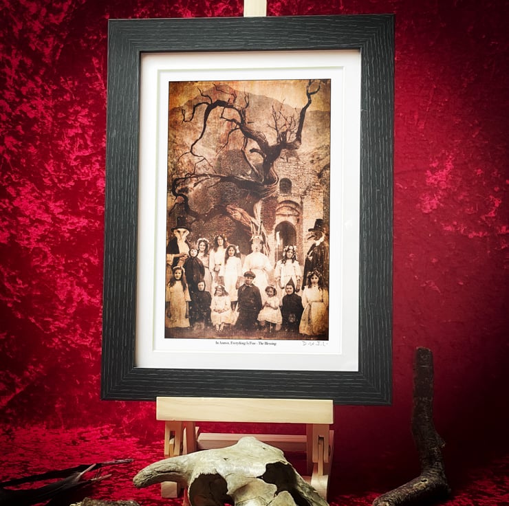Born in Cardiff in the early 1970s, I spent my formative years surrounded by arcade machines, comics, TV and cinema; passions that mix happily with my love of tales of folklore, mythology and strange customs. I’m inspired by figurative art, magical surrealism, theatrical lighting, mysterious narratives, and old wives' tales. I incorporate pieces from my collection of antique and vintage vernacular photographs into the work, using traditional and digital techniques in its construction.