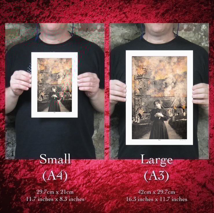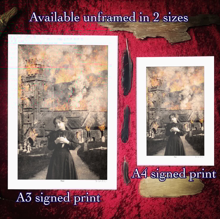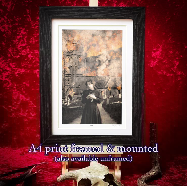 Born in Cardiff in the early 1970s, I spent my formative years surrounded by arcade machines, comics, TV and cinema; passions that mix happily with my love of tales of folklore, mythology and strange customs. I’m inspired by figurative art, magical surrealism, theatrical lighting, mysterious narratives, and old wives' tales. I incorporate pieces from my collection of antique and vintage vernacular photographs into the work, using traditional and digital techniques in its construction. The original piece that this print is taken from was selected for and shown at the Cowbridge Open Art exhibition in 2022.