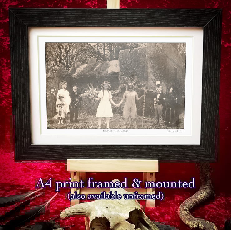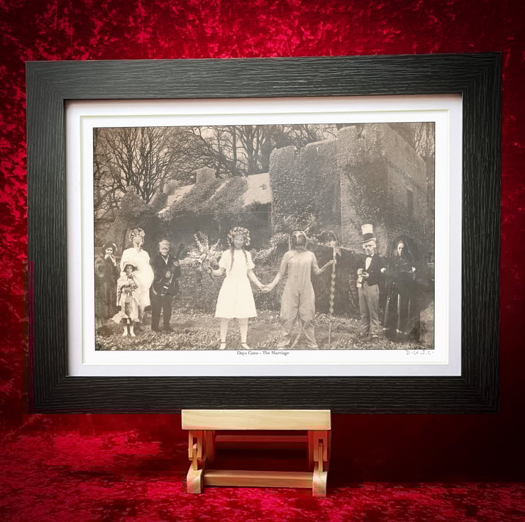 Born in Cardiff in the early 1970s, I spent my formative years surrounded by arcade machines, comics, TV and cinema; passions that mix happily with my love of tales of folklore, mythology and strange customs. I’m inspired by figurative art, magical surrealism, theatrical lighting, mysterious narratives, and old wives' tales. I incorporate pieces from my collection of antique and vintage vernacular photographs into the work, using traditional and digital techniques in its construction. The image is one of a pair, with the piece The Betrayal. They both utilise the elements of the same photo in their composition to create a narrative of love and duplicity.