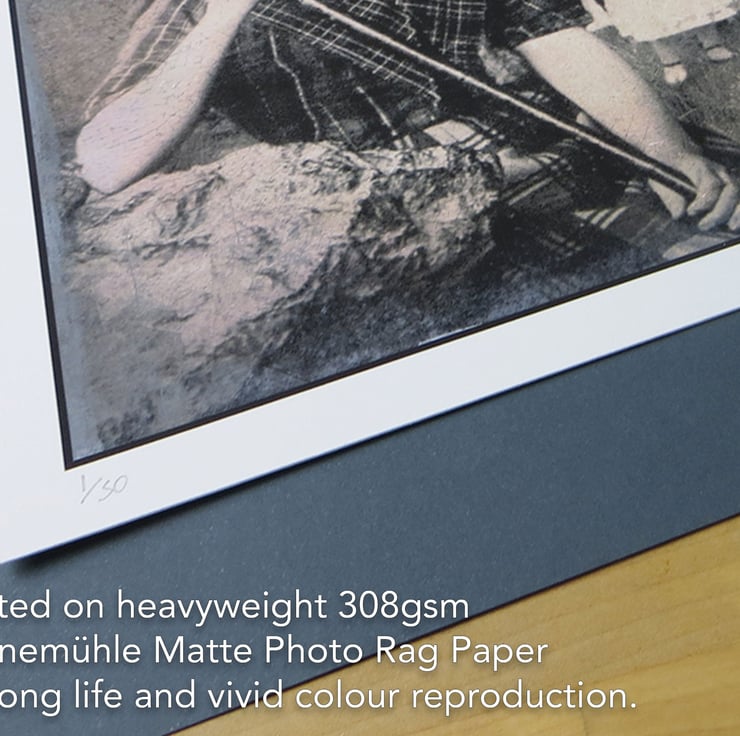 The small version has an edition of 200, and the large version an edition of 50, both signed and numbered. Each print is produced with meticulous care using a Canon Giclée printer, original Canon Lucia inks, and heavyweight 308gsm Hahnemuhle Photo Rag paper. They are made, packaged, and shipped by the artist. Items despatched within 3-4 days, but delivery times may vary according to location.