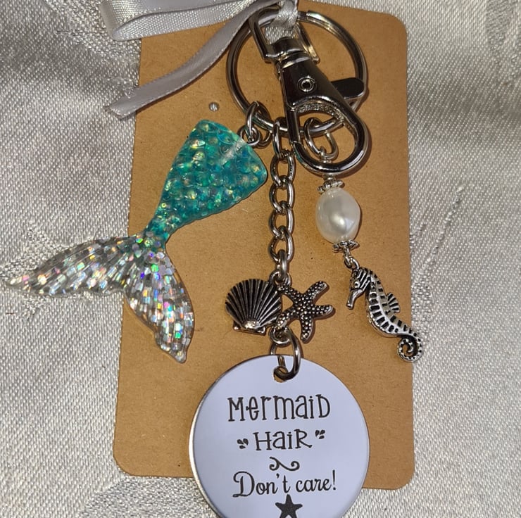 Gorgeous Mermaid Hair, Don't Care Key Ring - Bag Charm - Key Chain.