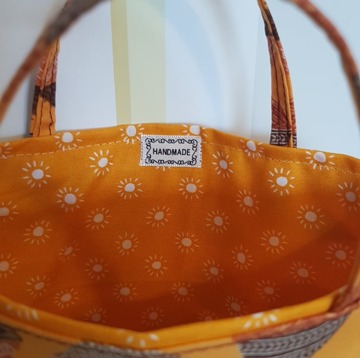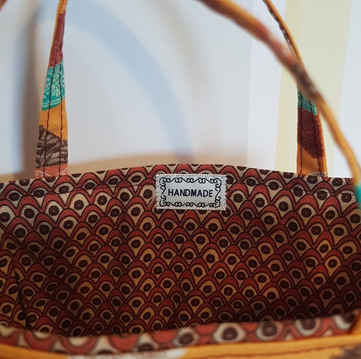Handsewn by me with cotton fabric it is lined and interlined so will keep its shape