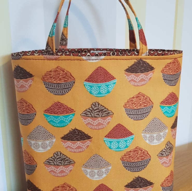 This lovely cotton fabric makes a great reusable gift bag. Just pop a little gift inside. Great for foodie gifts for a cook. And it can be used to keep something in in the future by the recipient.