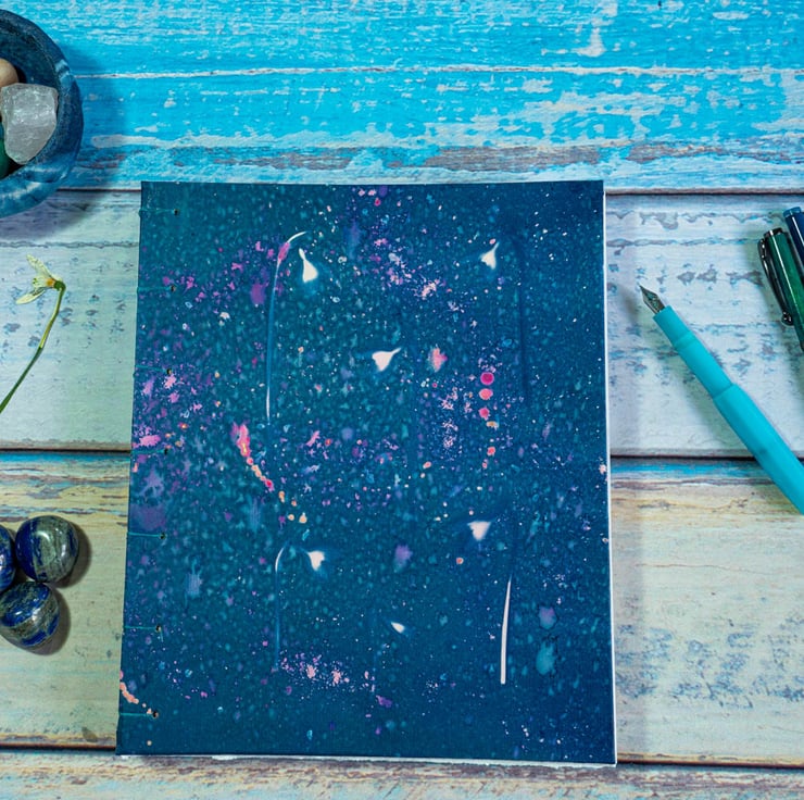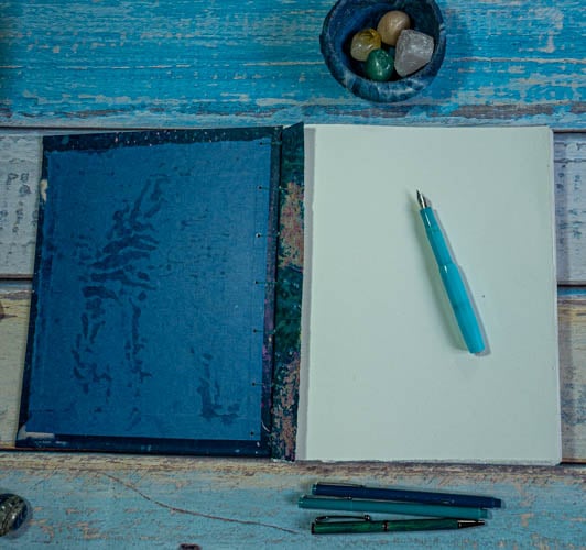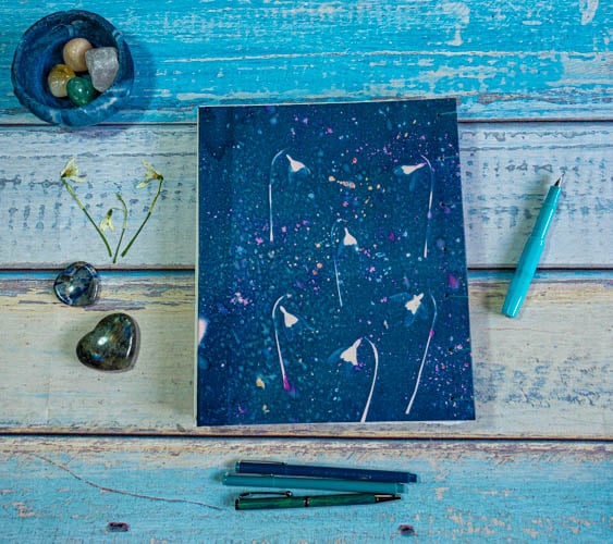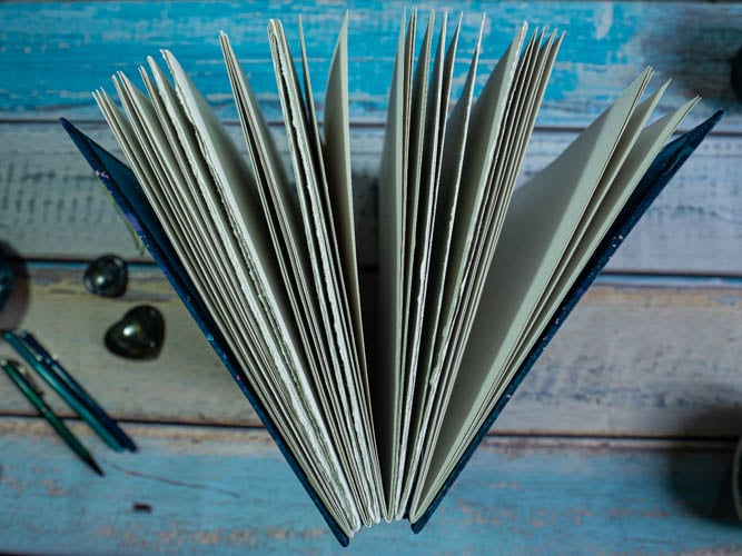 For this journal I have used cyanotype print spine wraps, which look beautiful when your book is standing on a shelf. This is not just a journal, it’s a work of art.