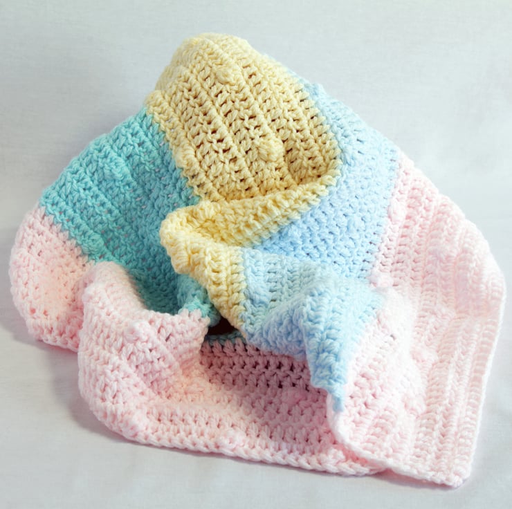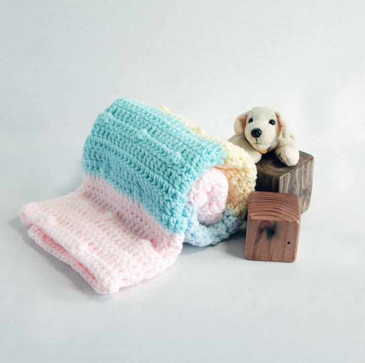 Celebrate the joy and hope that comes with a new baby with this stunning crochet baby blanket. Handmade, this blanket showcases a harmonious blend of colors. Crafted using premium quality, ultra-soft yarn, it offers the perfect balance of warmth and breathability. Either use it as a cute nursery decoration or as a cozy blanket for your little one.