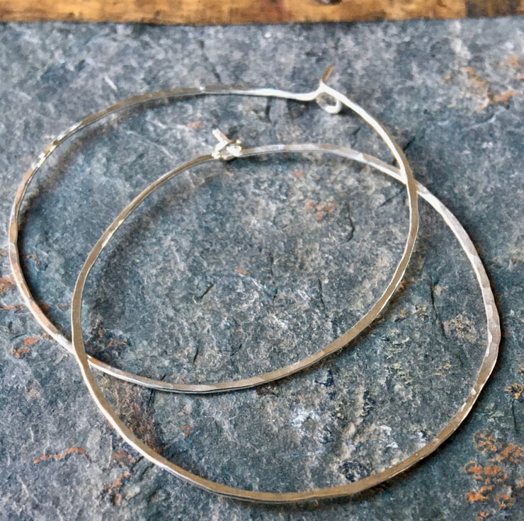 These earrings are made from 100% recycled Solid Sterling Silver and have been slightly hammered to catch the light this also work hardens them to make them durable.
