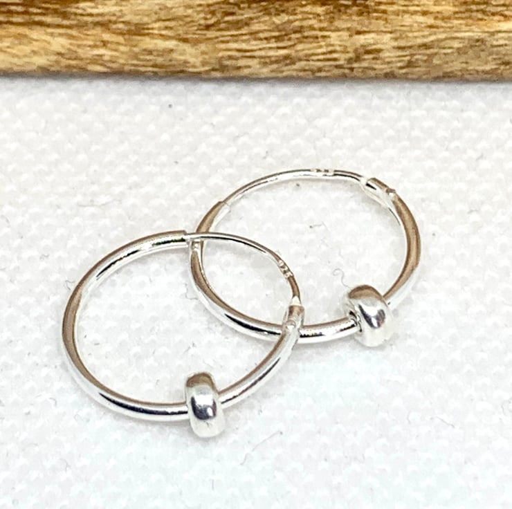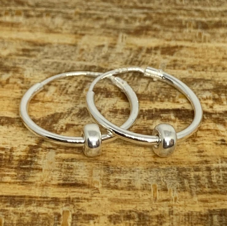 Made from Sterling Silver these Sleeper Hoop Style Earrings have a little spinner Spinner Charm