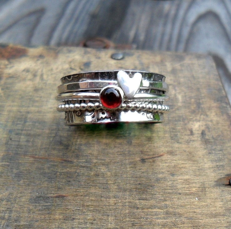 Garnet & Heart 3 Spinner Ring Size T-Z