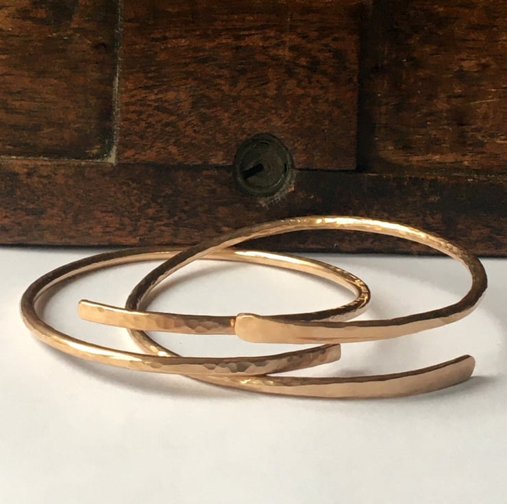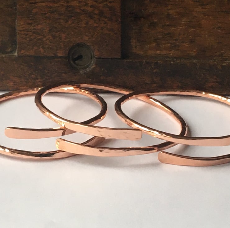 Made from 3mm Copper these bangles have been given a dimpled effect to catch the light and hand forged at the ends