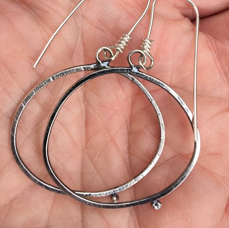 Silver Organic Hoop Earrings, Irregular Round Earrings, 925 Silver Hoop Earrings