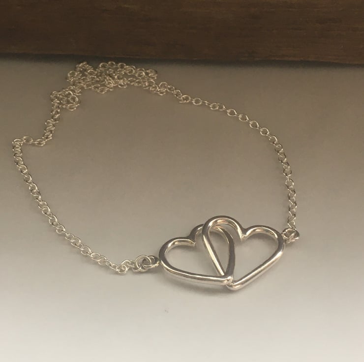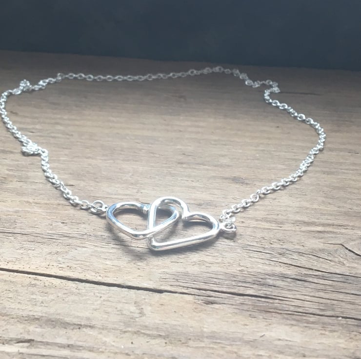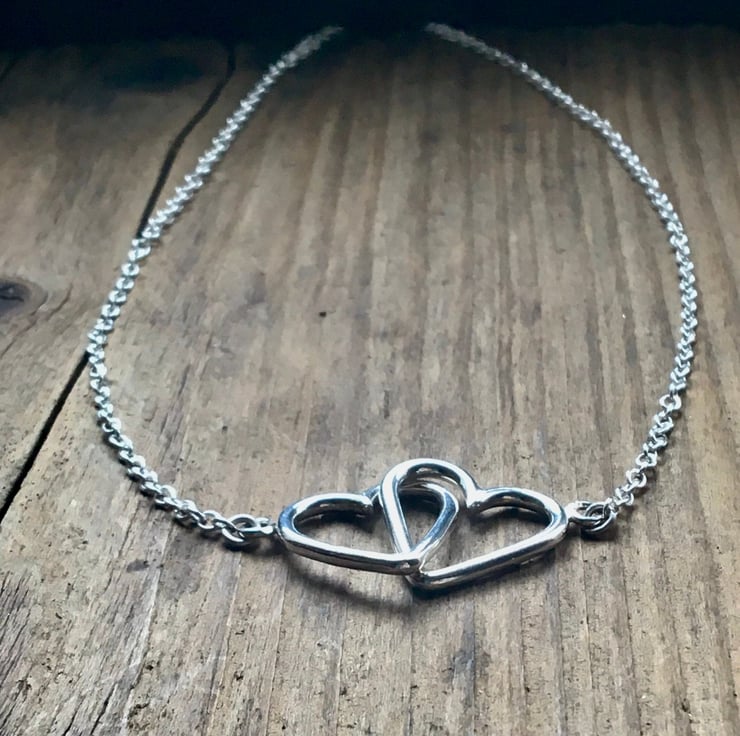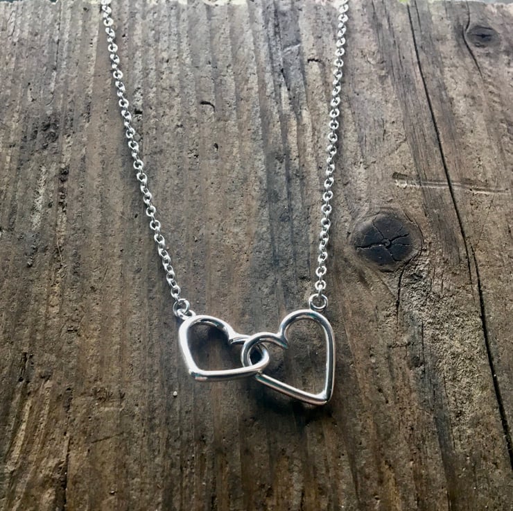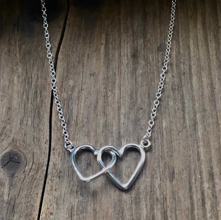 Each heart has been made by hand with thick gauge silver metal and two tiny jump rings to attach the chain.