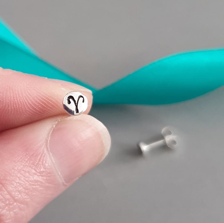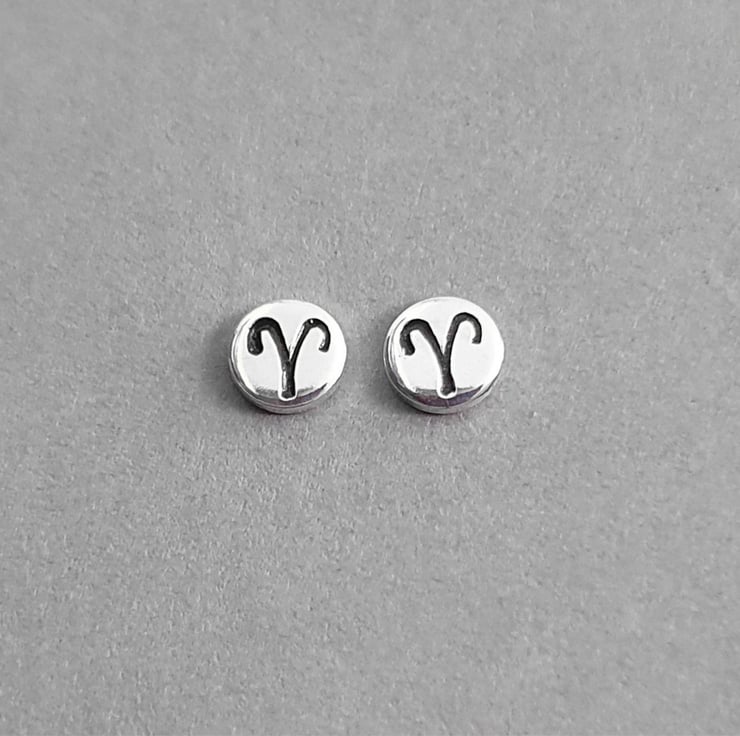 Small sterling silver Aries stud earrings - Sustainable zodiac jewellery