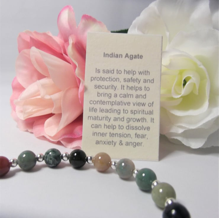 Indian Agate resonates most strongly with the base chakra and is said to help with protection, safety, and security. It helps to bring a calm and contemplative view of life leading to spiritual maturity and growth. It can help to dissolve inner tension, fear, anxiety & anger.