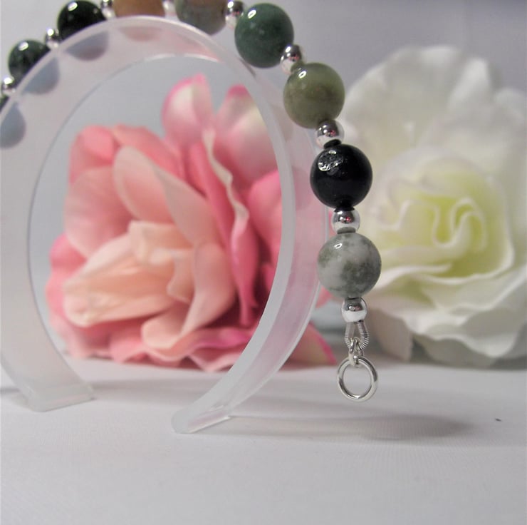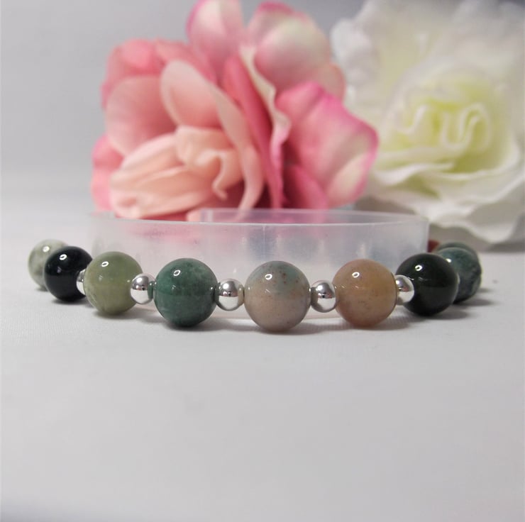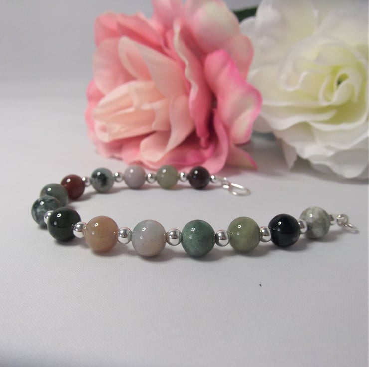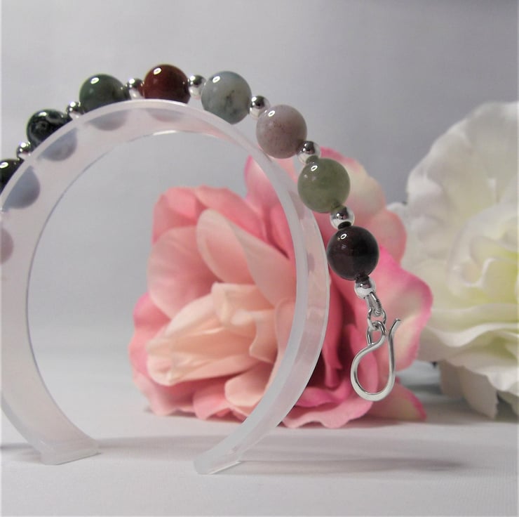 This handmade bracelet is a perfect blend of natural beauty and thoughtful design. It measures approx. 7 inches long and features gorgeous earthy Indian Agate gemstone beads paired with recycled silver beads.