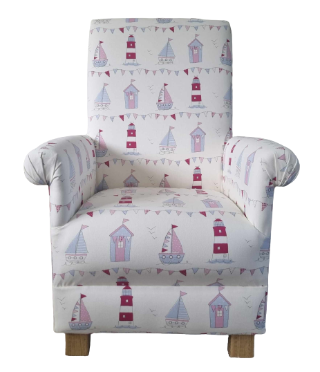 This is a handcrafted, sturdy adult sized armchair, which has been made by myself, a professional upholsterer with over 32 years experience, using Fryetts Nautical Pink fabric.