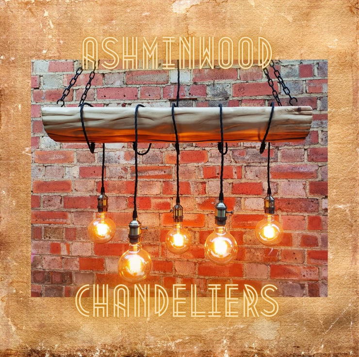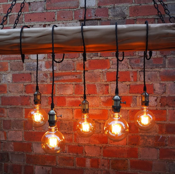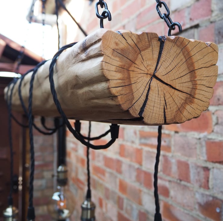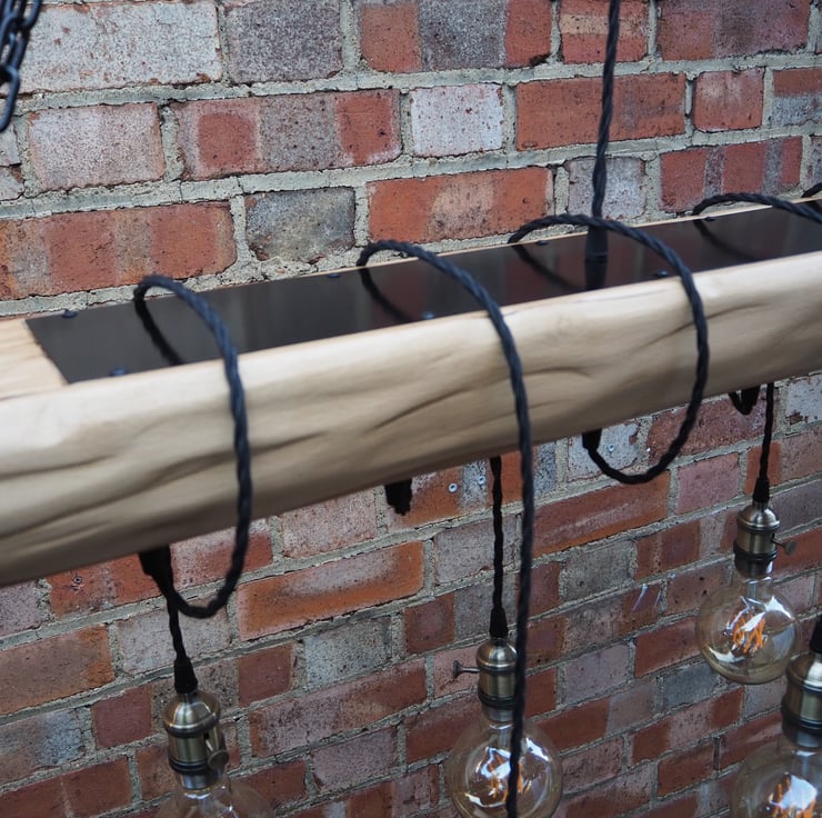 Natural English Oak Beam Chandelier with 5 Pendant Lights. E27 Industrial style bulb socket.
