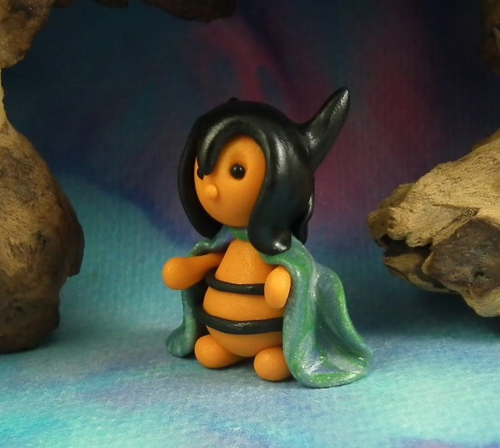 This is a 'one of a kind' creation; entirely handmade without the use of moulds here at my studio on the Sussex Coast. Modelled with Prosculpt polymers, painted with heat set paints before sealing with lacquer, Bree has sparkling black onyx eyes and is one and a half inches tall.