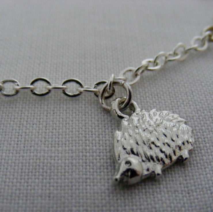 A lovely wildlife anklet handmade with, 14x10mm silver plated hedgehog charm,