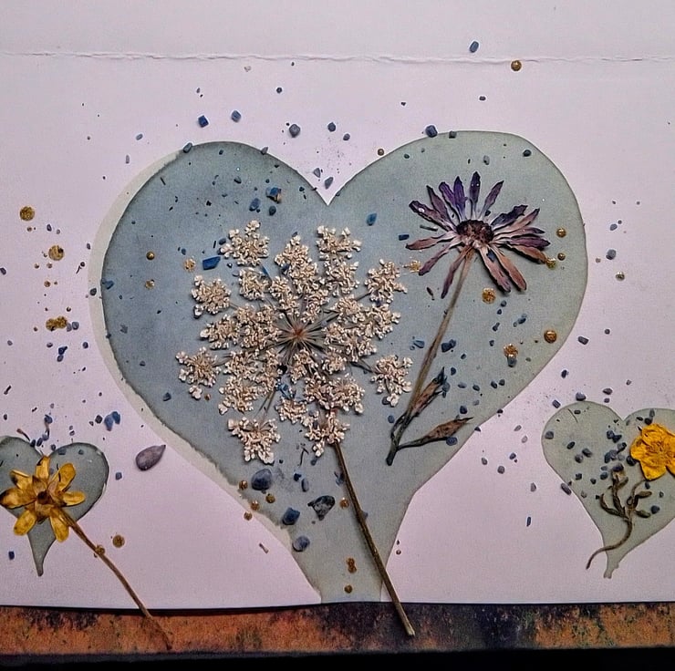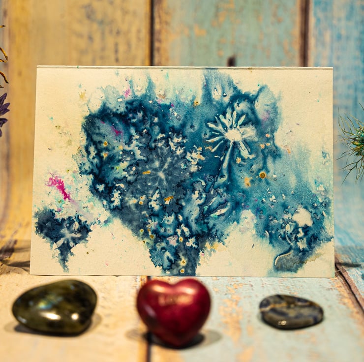 Each card in my Heart range is an original cyanotype print, created using wildflowers gathered during summer from the hedgerows around my beautiful Wiltshire home, or flowers from my English country garden, all pressed and lovingly kept to be used as the subjects of cyanotypes.