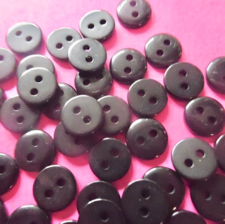 100 BLACK 9mm Acrylic Buttons 2 holes