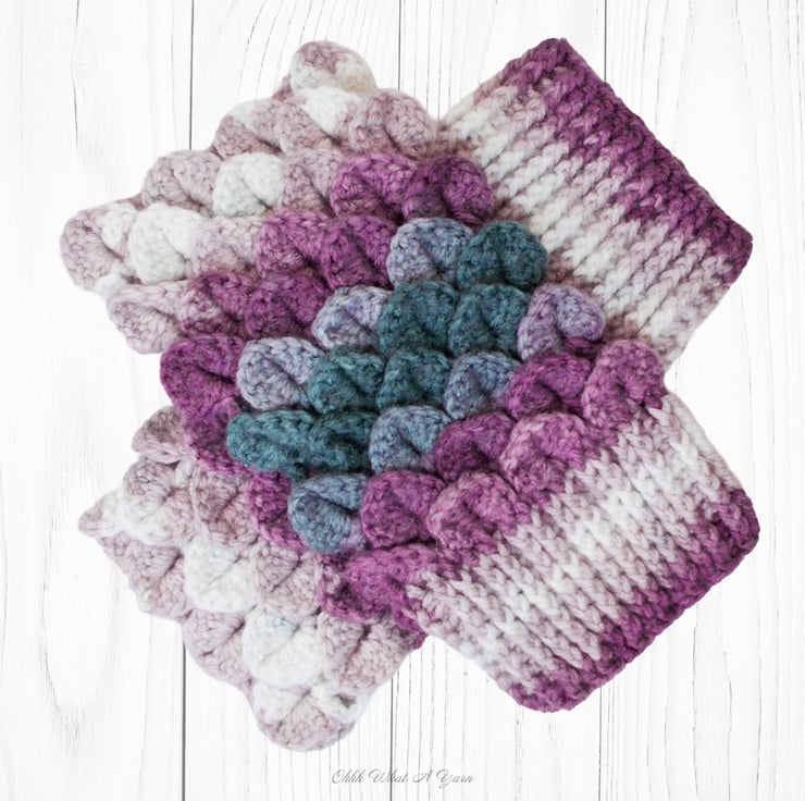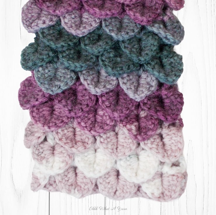 I adore all the gorgeous colour changing yarns and they are shown off perfectly with the crochet crocodile stitch.
