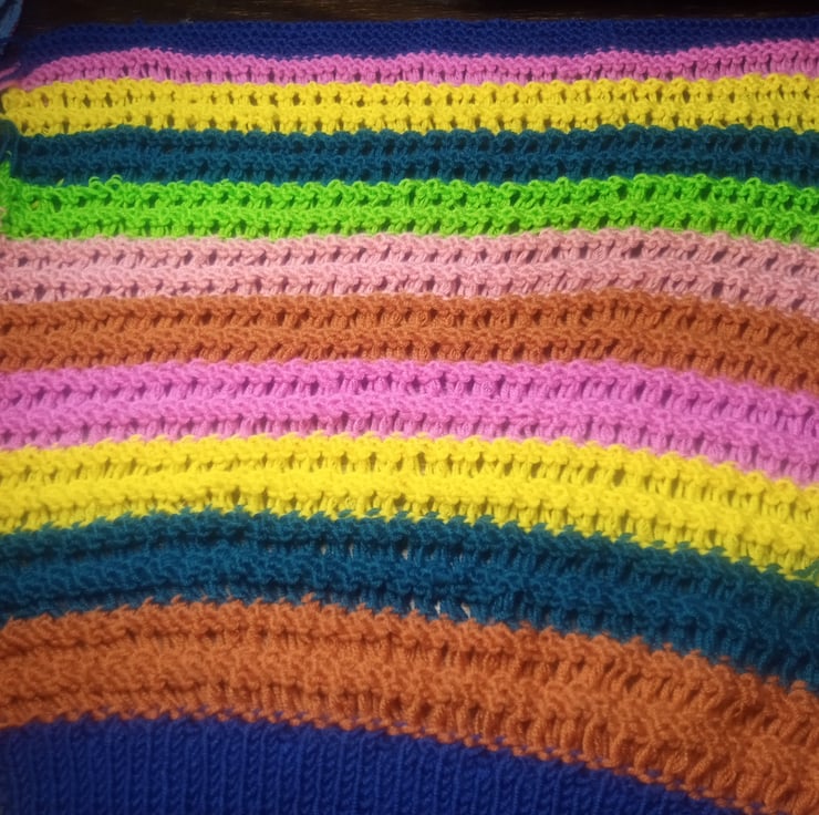 A beautiful, one-of-a-kind hand-knit jumper. This is the result of my most recent interest to use gorgeous, modern yarns and recreate vintage knitting or crochet patterns. This one is the result of mixing Scheepjes Merino Soft Yarn and a knitting pattern from Sirdar. It is made to the largest pattern size.