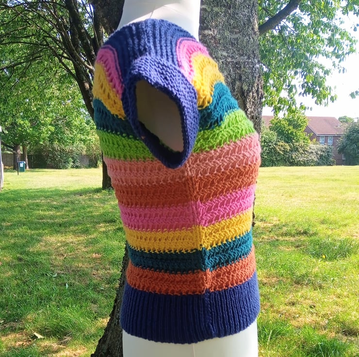 The stitch pattern is quite lacy so you might want to wear something underneath if you're not so confident. Along with it's sleeveless design, this makes it a perfect summer top.