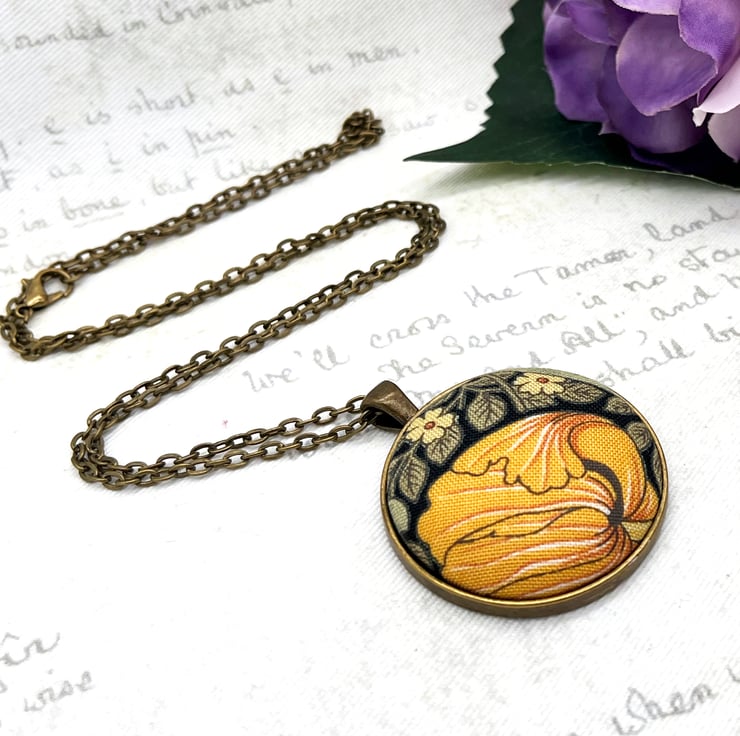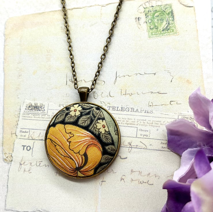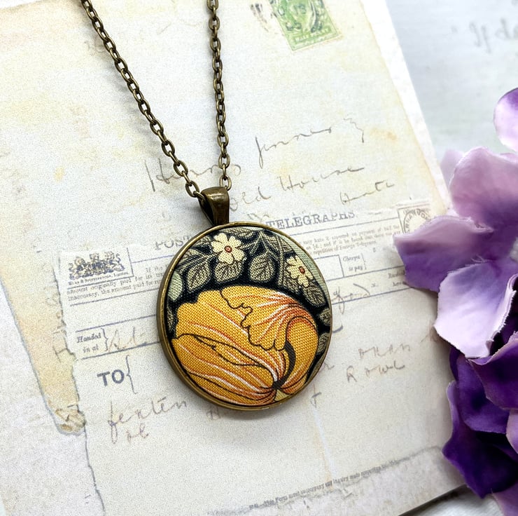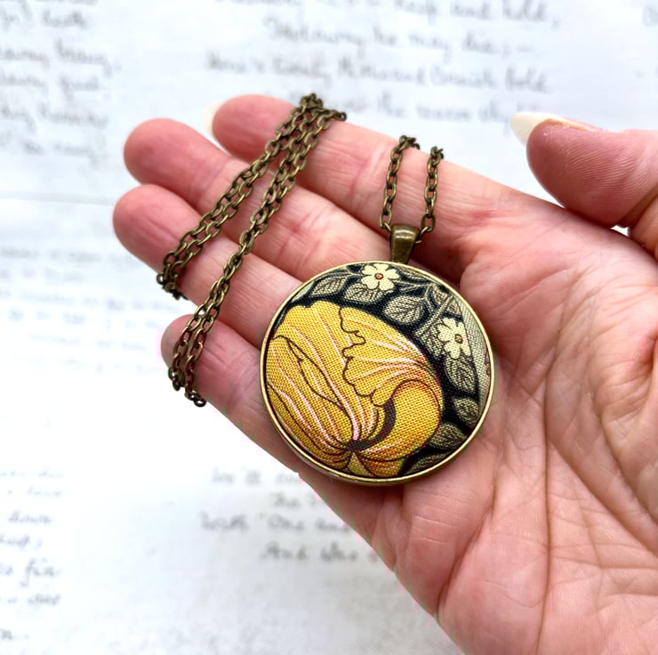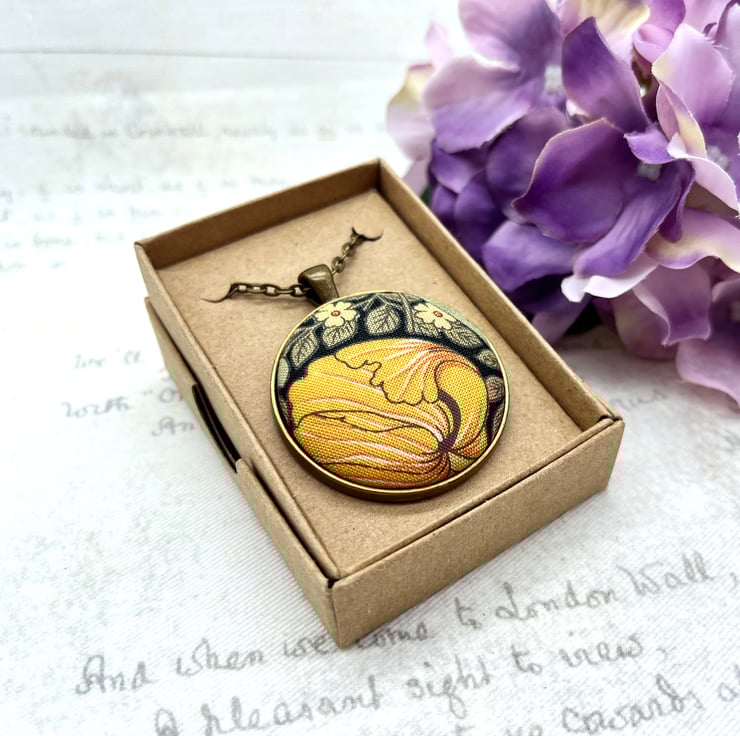 Perfect as a second wedding anniversary gift (traditionally cotton), is this floral fabric button pendant.
