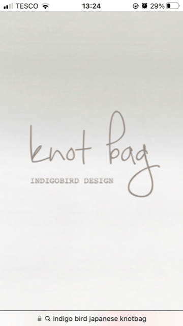 This small Japanese knot bag has asymmetrical handles and a contrasting plain purple cotton lining.