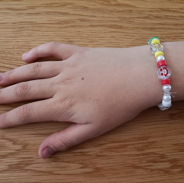 Rainbow colours, with smiley faces,