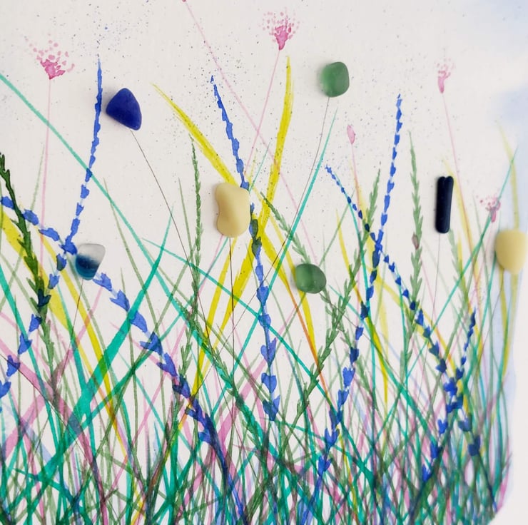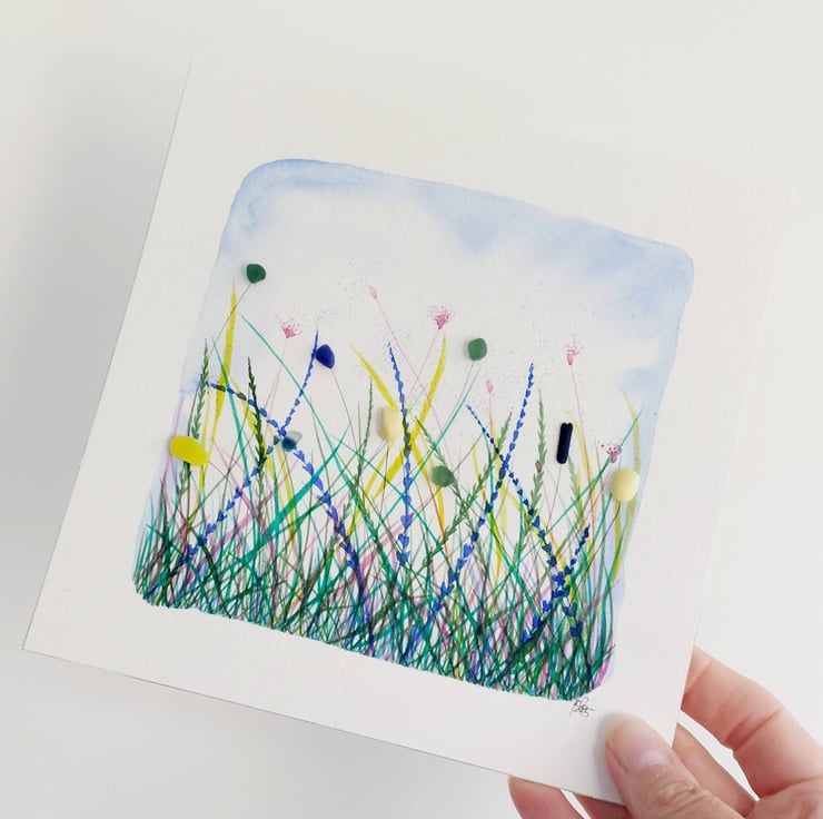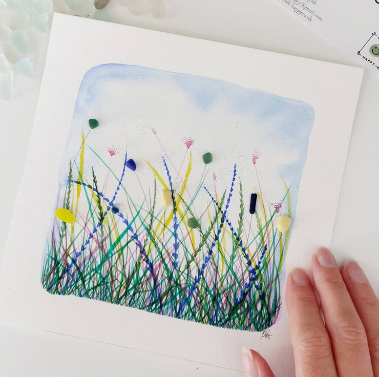 I have very recently fallen in love with watercolour as a medium and I'm delighted to have found a way to incorporate this into my love of sea glass in a way that is unique to me. I hope you are drawn to the natural beauty of the colours in this truly one-off bespoke piece, inspired by the confetti fields in my home town of Pershore.