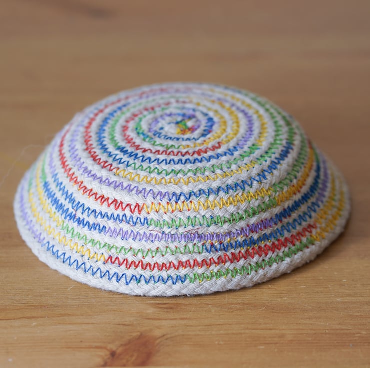 Made by machine stitching onto cotton cord.