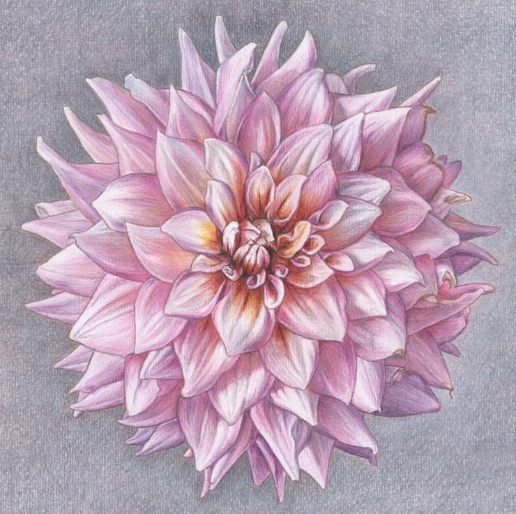 Sometimes one perfect bloom is all you need. This dahlia was at its peak when I drew it, all shades of pinky purples, each individual petal open and unfurled. A simple statement of beauty.