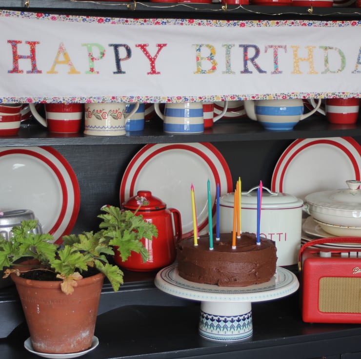 This would look lovely as part of a Birthday celebration and is the perfect antidote to plastic decorations. I have shown it decorating my own dresser and have used some sticky hooks to hang it in place. Alternatively you could use drawing pins or pegs to display it.