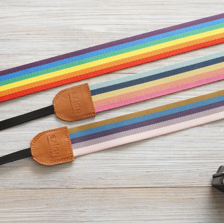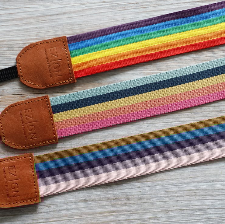Rainbow camera straps are available in 3 different stripe combinations.